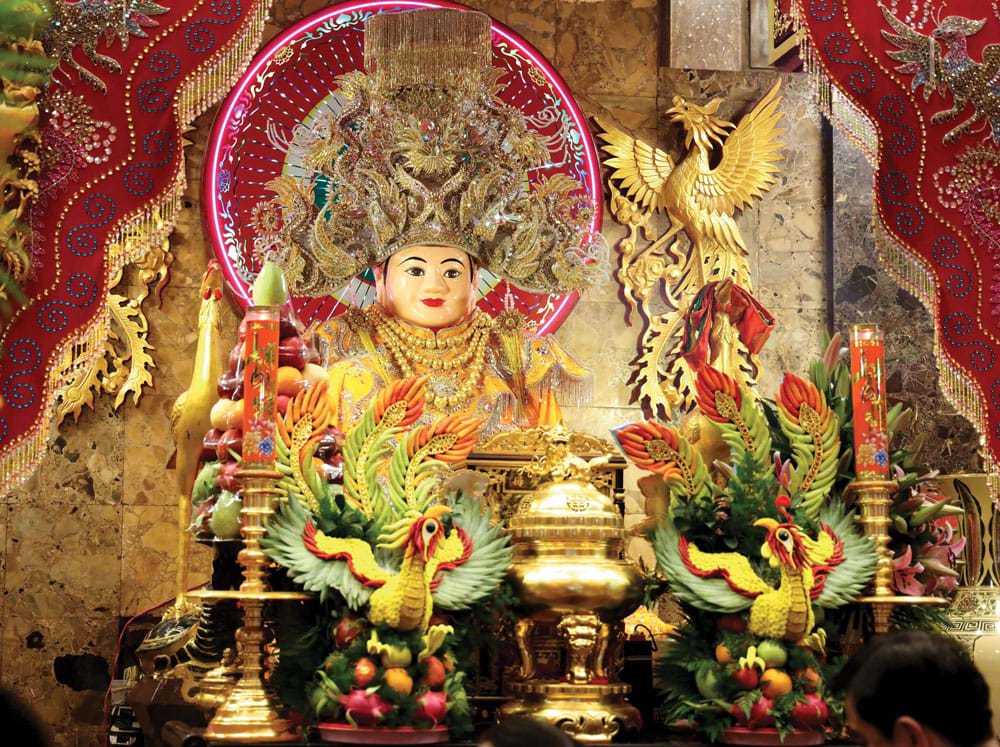 Tượng Bà Chúa Xứ Núi Sam sau khi tiến hành lễ tắm Bà. Ảnh: Bình Thủy