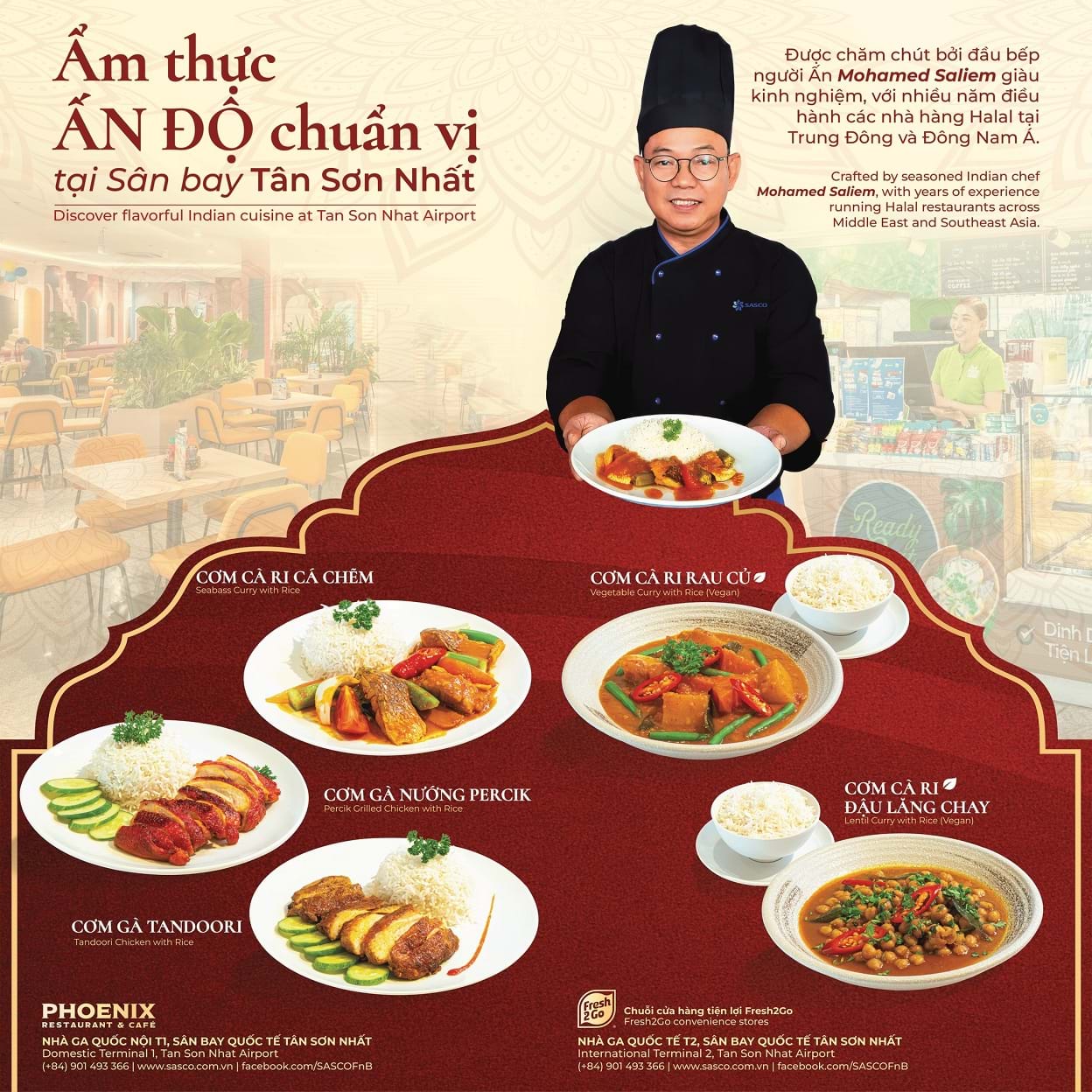 Tiếp nối dòng chảy quốc tế, đầu bếp Mohamed Saliem mang đến những món ăn Ấn Độ chuẩn vị, đạt chứng nhận Halal quốc tế. Ông chia sẻ: “Ẩm thực Ấn Độ là bức tranh nhiều sắc màu. Tôi muốn mang bức tranh ấy đến thực khách tại Việt Nam với sự tinh tế nhất để ai cũng có thể thưởng thức và yêu thích.” Sự hiện diện của thực đơn này không chỉ chiều lòng hành khách Nam Á, Trung Đông mà còn chinh phục cả những thực khách trẻ Việt Nam đam mê khám phá những tầng vị giác mới lạ.