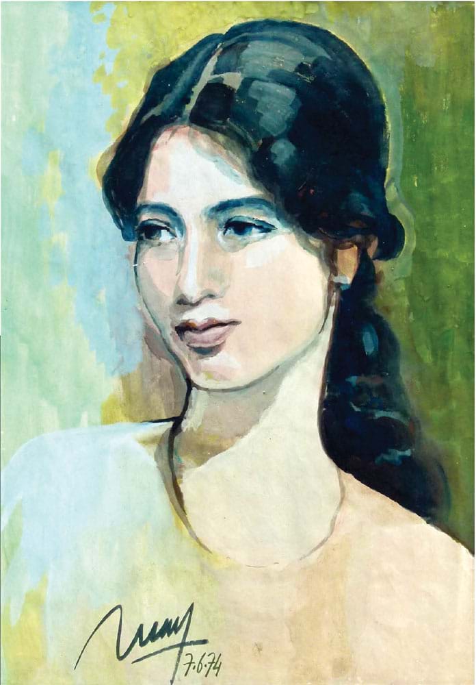 Chân dung bạn đời vẽ trên gác xép xuân 1974. Tranh: Trịnh Lữ