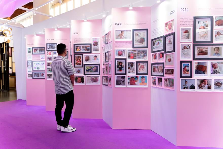 Ngày hội thu hút sự tham gia của gần 300 em bé sinh tại FV cùng gia đình trở lại bệnh viện. Tại khuôn viên sự kiện, hàng trăm bức ảnh do các gia đình gửi tặng được trưng bày, tạo nên không gian lưu giữ những khoảnh khắc đầu đời của các em bé.