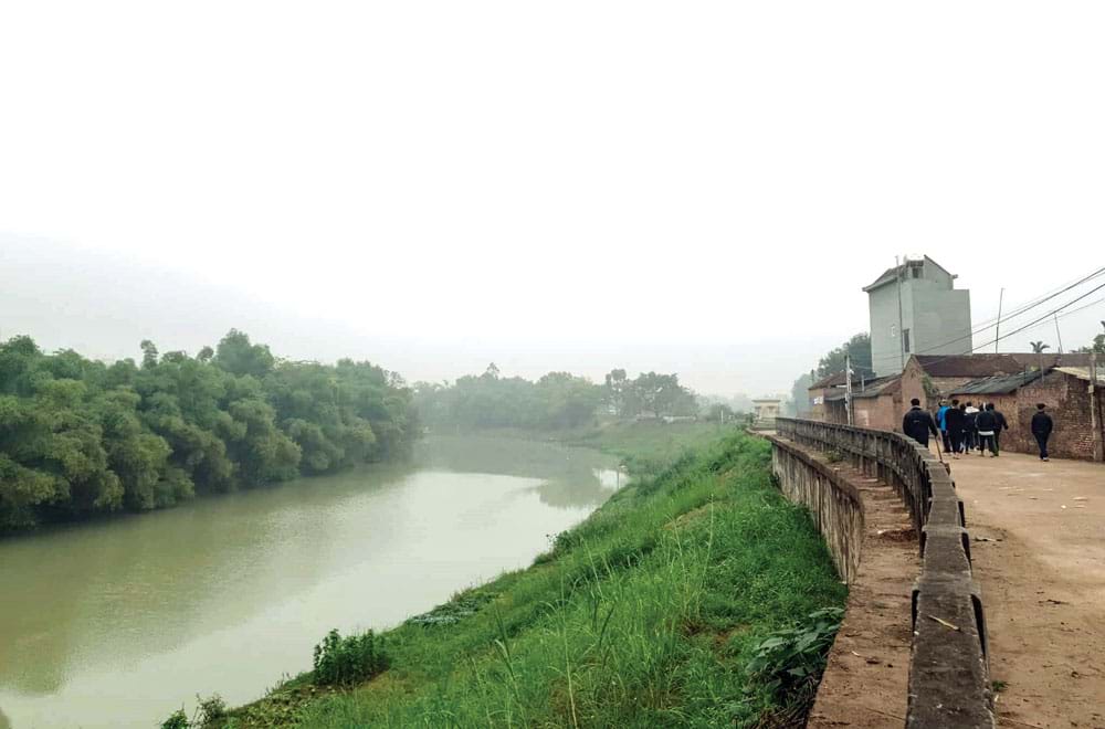 Kè đá dọc bờ sông Thương dài chừng 3km chảy qua làng Bến (ảnh), làng Sấu, làng Lãn Tranh và Liên Bộ. Ảnh: NQĐ