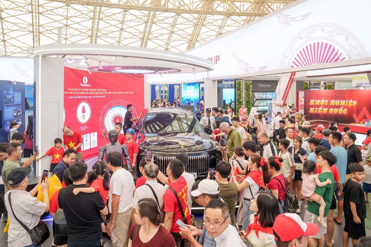 Khách tham quan triển lãm "Thành tựu đất nước: 80 năm Hành trình Độc lập – Tự do – Hạnh phúc" diễn ra từ 28.8 – 5.9.2025 tại Trung tâm Triển lãm Việt Nam (đường cầu Tứ Liên, Đông Anh, Hà Nội).