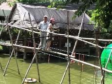 Chỉ quê tôi mới có con đường đó. Cầu khỉ bắt dọc theo đường vào suốt mùa nước nổi. Trước nhà ai người đó bắt, hết xóm này qua xóm khác.