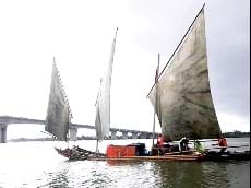 Đỗ Nguyên Ái cùng nhóm cộng sự đang thực hiện hải trình dọc các tỉnh ven biển bằng chính chiếc bè tre đơn sơ làm bằng những luồng tre Thanh Hóa…