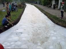 Dòng nước tại một con kênh tưới tiêu của bà con ở tỉnh Quảng Nam bất ngờ nổi bọt trắng xóa, nước chảy đến đâu cá chết đến đó.