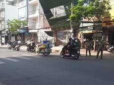 Biển quảng cáo khoảng 30 m2 ngã đập vào trụ điện, nhiều người đi đường hoảng loạn tháo chạy thoát thân trên đường Trương Công Định, quận Tân Bình (TP.HCM).