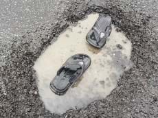 Sau đợt mưa lớn 3 ngày qua, tuyến đường cao tốc Đà Nẵng – Quảng Ngãi lại xuất hiện nhiều "ổ gà".