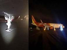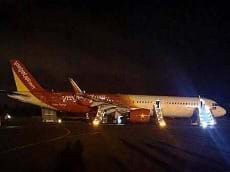 Hai bánh trước rụng rời khiến càng chà sát xuống đường băng khi máy bay Vietjet hạ cánh tại Buôn Ma Thuột.