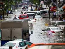 Nước ngập sâu hơn một mét khiến nhiều ôtô chết máy trên đường Phan Huy Ích, tài xế đành ngủ trên xe suốt đêm chờ nước rút.