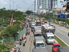 Sụp lún xảy ra trên đường Võ Văn Kiệt, đoạn đang thi công hệ thống cống thuộc Dự án Cải thiện môi trường nước giai đoạn 2, khiến giao thông bị phong tỏa nhiều giờ.