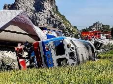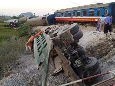 Đâm vào chiếc xe tải chạy qua đường ngang, đầu máy cùng 6 toa của tàu SE19 lật trong đêm tại Tĩnh Gia (Thanh Hóa). Vụ việc khiến 2 người chết, nhiều người bị thương.
