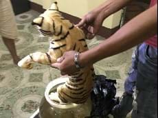 Kiểm tra thùng xốp trên xe khách, cảnh sát phát hiện 2 cá thể hổ được ngâm trong bình thủy tinh. Mỗi con hổ nặng hơn 20 kg.