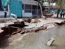 Đoạn bờ kè sông Ô Môn đang được thi công bất ngờ sạt lở khiến gần chục hộ dân nháo nhào tháo chạy.