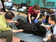 Một cá thể gấu ngựa vừa được một hộ gia đình tại quận Bình Tân, TP.HCM tự nguyện chuyển giao đến trung tâm cứu hộ gấu của Trung tâm bảo tồn động vật hoang dã Nước Việt (Four Paws) tại Ninh Bình.