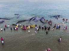Nhóm cứu hộ miệt mài chữa trị và di chuyển đàn cá nhà táng mắc cạn trên bờ biển Indonesia.
