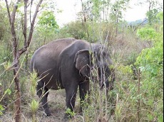 Một cá thể voi rừng xuất hiện tại một bản vùng cao ở tỉnh Sơn La, tắm ao của một hộ dân đến đầu giờ chiều cùng ngày rồi trở về rừng.
