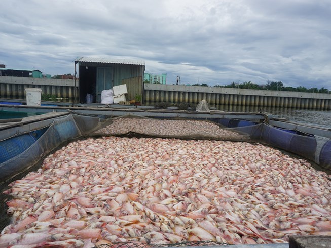 Cá nuôi chết ở sông Cổ Cò đoạn qua phường Khuê Mỹ, quận Ngũ Hành Sơn, TP Đà Nẵng khiến người dân rơi vào cảnh trắng tay.