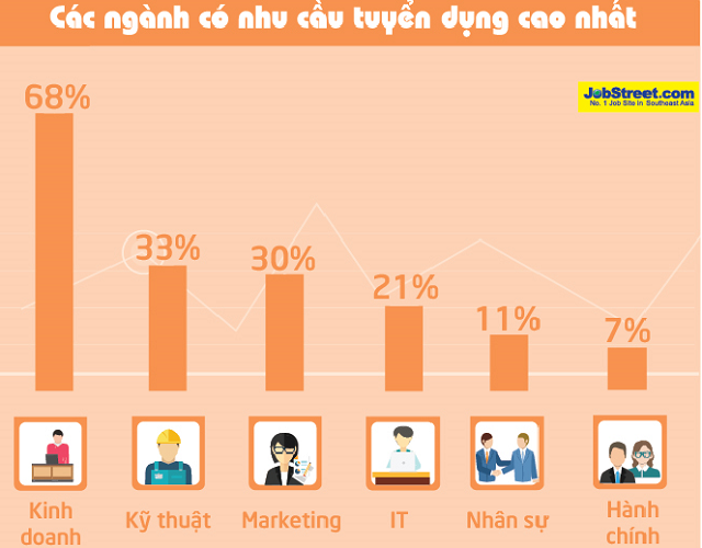 Gần 95% công ty có nhu cầu tuyển dụng trong 3-6 tháng tới và 81% cho biết nhu cầu nhân sự năm nay cao hơn so với năm 2015, theo dữ liệu khảo sát của mạng việc làm trực tuyến JobStreet.com thực hiện với hơn 370 nhà tuyển dụng trong vòng quý 1.2016.