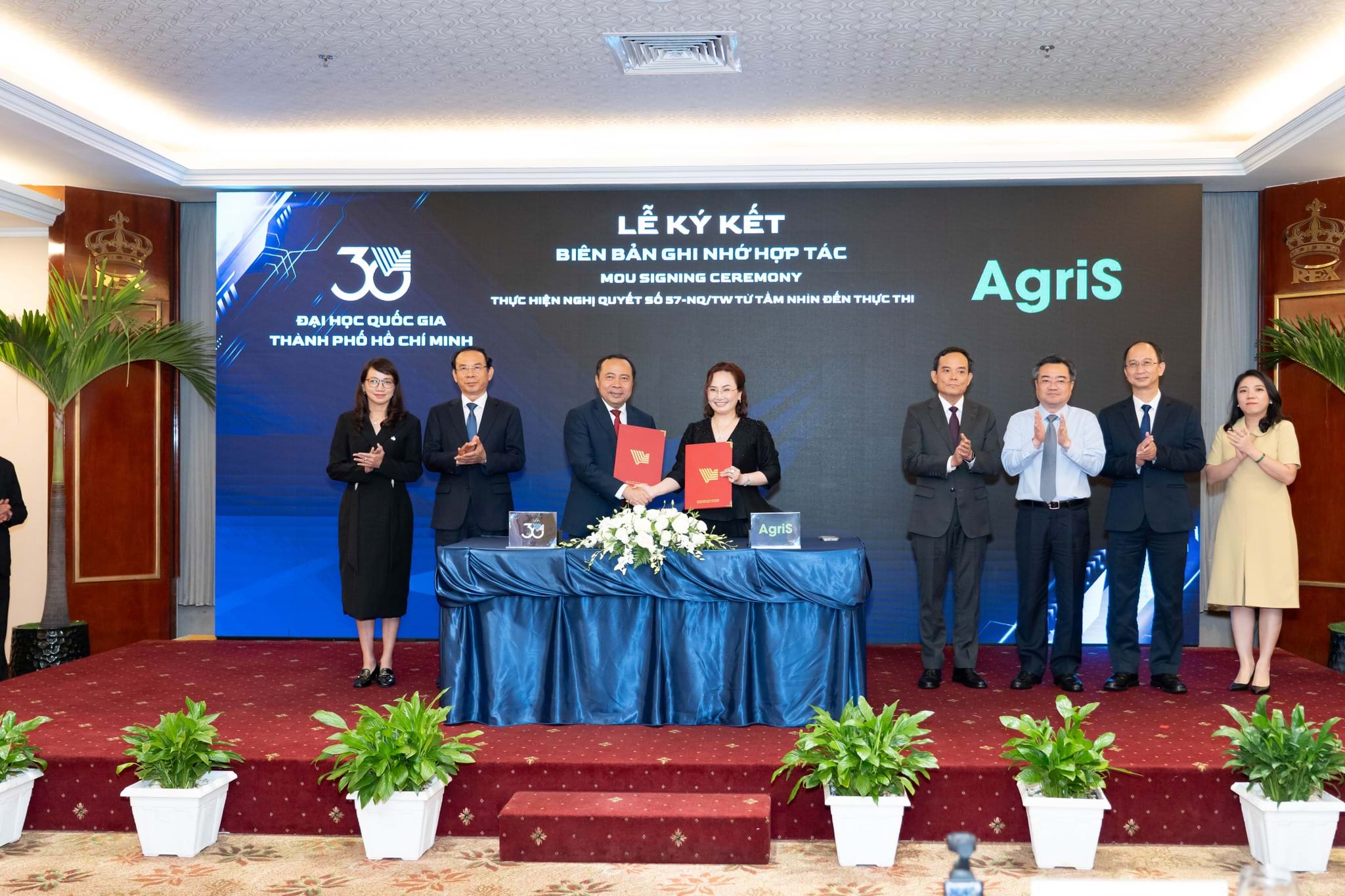 Bà Đặng Huỳnh Ức My tại sự kiện AgriS và Đại học Quốc gia TP.HCM ký kết hợp tác chiến lược đầu tư cho thế hệ tri thức trẻ và chuyển giao công nghệ tháng 5.2025 dưới sự chứng kiến của các lãnh đạo Trung ương và địa phương. Ảnh: VGP