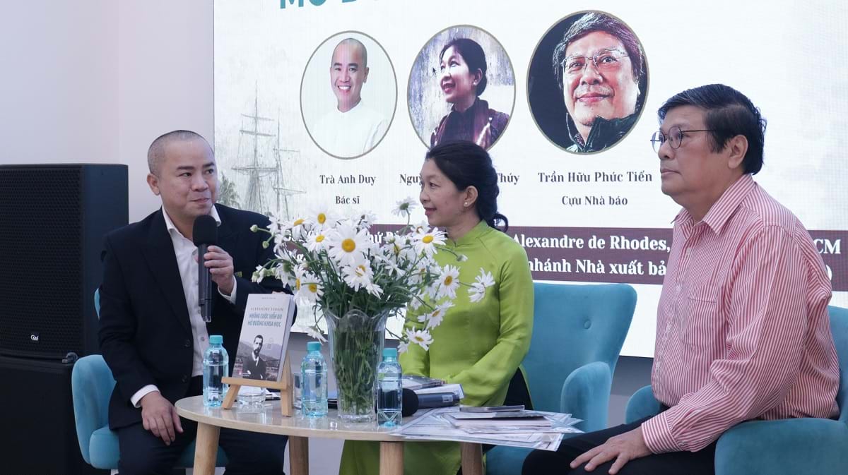 Tại sự kiện, tác giả Thanh Thúy và nhà nghiên cứu Phúc Tiến (bìa phải) đã thảo luận về di sản của bác sĩ Yersin. Ảnh: NXB