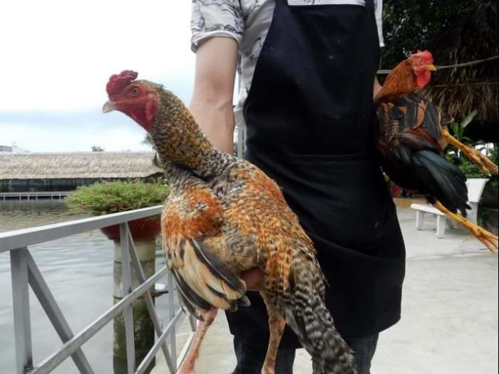 Em nhân viên bán hàng duyên dáng, với tà áo bà ba hồng thắm nháy mắt bảo: “Ở đây, chất chứa cả “xóm” gà ngon!” Gà mà ưa gáy, là con gà tre. Lông cổ loe hoe đích thị gà đòn. Võ hiểm đầy mình - mấy “thím” hoạt kê Bình Định. Ăn rồi bịn rịn đích thị gà Re (Hre)…
