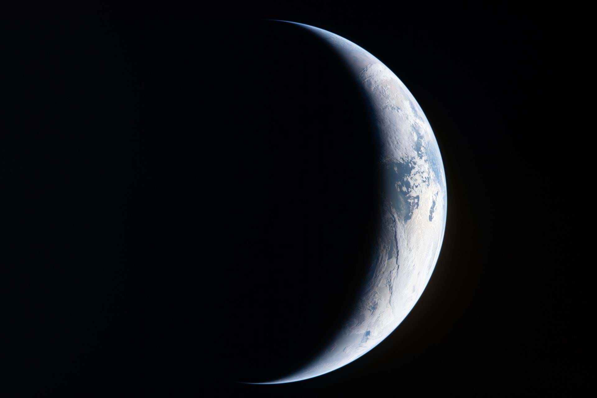 Một phần nhỏ của Trái Đất được chiếu sáng trên nền đen của vũ trụ, do một thành viên phi hành đoàn Artemis II qua cửa sổ tàu vũ trụ Orion hôm 4.4.2026.