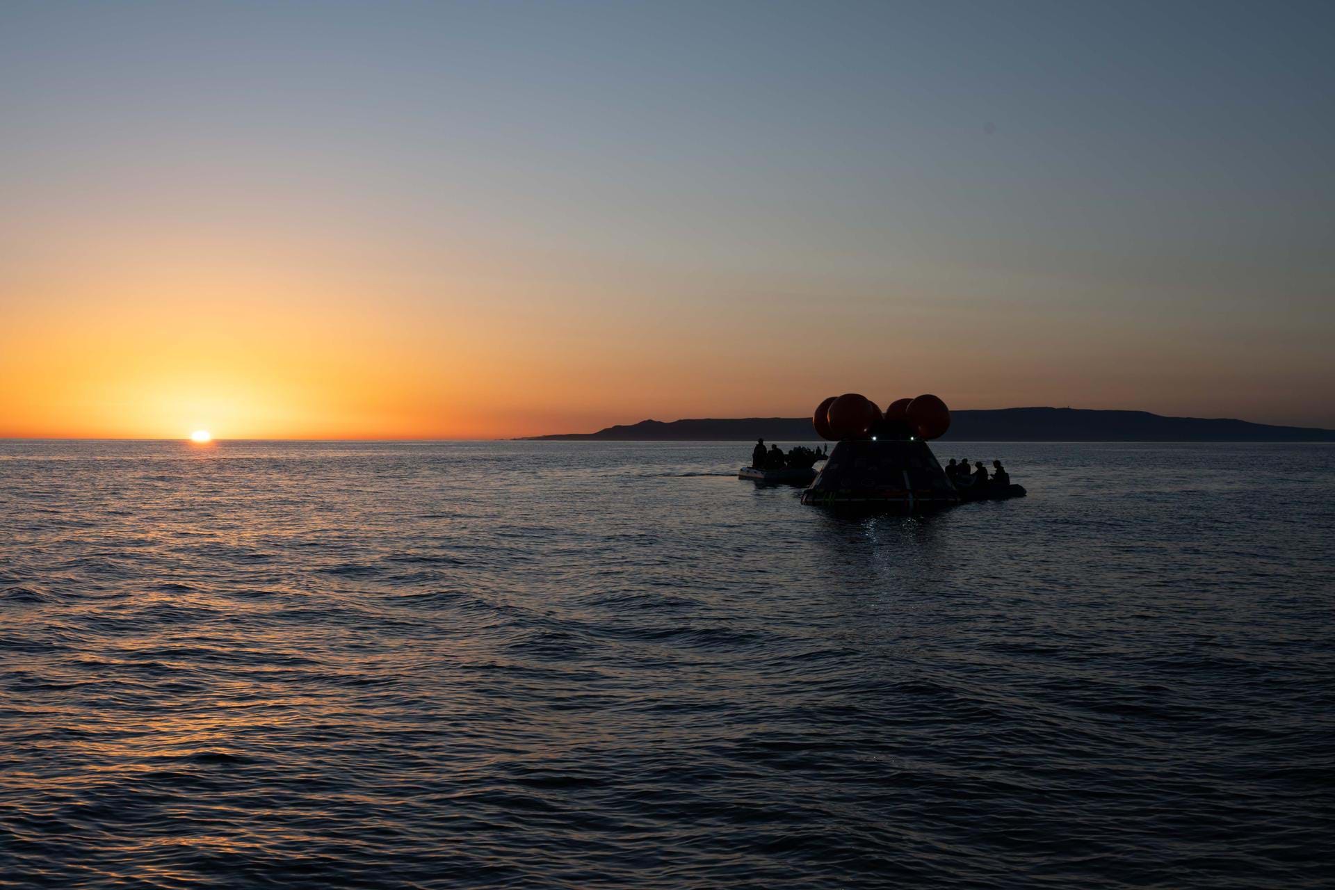 Các thành viên của nhóm Hạ cánh và Thu hồi Artemis của NASA và Bộ Quốc chiến của Mỹ thực hiện một cuộc diễn tập mô phỏng cuối cùng về việc hạ cánh xuống biển của tàu Artemis II, trên Thái Bình Dương ngoài khơi bờ biển California. Các nhóm sẽ phối hợp với nhau để đón phi hành đoàn Artemis II và tàu vũ trụ Orion sau khi họ trở về Trái đất. Trong quá trình huấn luyện, các nhóm sử dụng Mô hình Thử nghiệm Mô-đun Phi hành đoàn (Crew Module Test Article), một mô hình kích thước thật của tàu vũ trụ Orion, để mô phỏng các điều kiện mà họ có thể gặp phải trong quá trình hạ cánh xuống biển của sứ mệnh Artemis II.