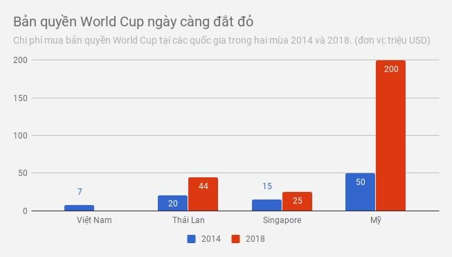 Cụ thể, năm 2014, các nhà đài của Singapore đã chi khoảng 15 triệu USD để mang giải đấu bóng đá lớn nhất hành tinh về kinh doanh. Con số này năm nay đã lên tới 25 triệu USD.
