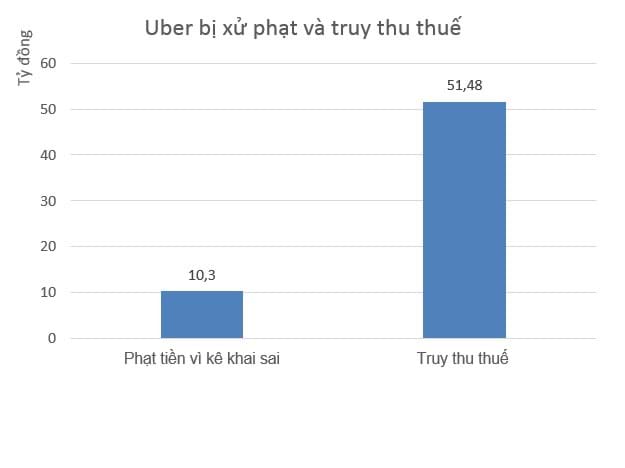 Uber bị xử phạt và truy thu tổng cộng hơn 66,6 tỷ đồng tiền thuế, bao gồm cả số tiền chậm nộp hơn 4,9 tỷ đồng. Đồ họa: P.Diệp |