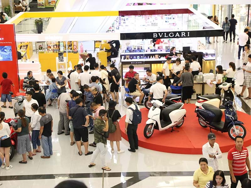 Xe máy điện Klara trưng bày cho khách tham quan trải nghiệm tại Vincom Center Landmark 81.