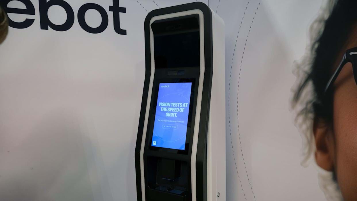 Máy kiểm tra thị lực tự phục vụ của Eyebot giúp giảm thời gian khám mắt kéo dài 20 phút xuống vài phút. Bài kiểm tra rất đơn giản, bạn chỉ cần đến quầy và để màn hình cảm ứng lớn hướng dẫn bạn các bước. Bạn sẽ trả lời một số câu hỏi sàng lọc cơ bản, bài kiểm tra này phù hợp cho người từ 18 đến 64 tuổi và sau đó hoàn thành một bài kiểm tra chữ nhanh chóng. Bạn chỉ cần cung cấp địa chỉ email của mình và chờ đơn thuốc được xử lý.