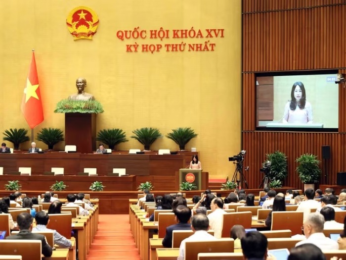 Đại biểu Nguyễn Thị Việt Nga phát biểu tại tổ 11. Ảnh: Vietnam+