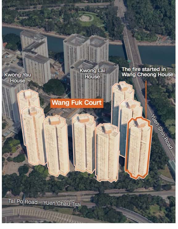 Wang Fuk Court là một trong nhiều khu phức hợp nhà ở cao tầng tại Hồng Kông, gồm 8 tòa nhà, mỗi tòa cao 31 tầng, với khoảng 2.000 căn hộ, hơn 4.800 dân cư. Nhiều cư dân đang sống tại các tòa nhà này là người về hưu, với khoảng 36% cư dân từ 65 tuổi trở lên, theo dữ liệu từ chính quyền.