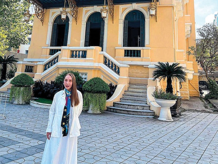 Bà Agnes Hui Bon Hoa trong chuyến về Việt Nam năm 2025 thăm lại tòa nhà từng là tư gia của gia đình bà, nay là Bảo tàng Mỹ thuật TP.HCM. Ảnh: The Philippine Star