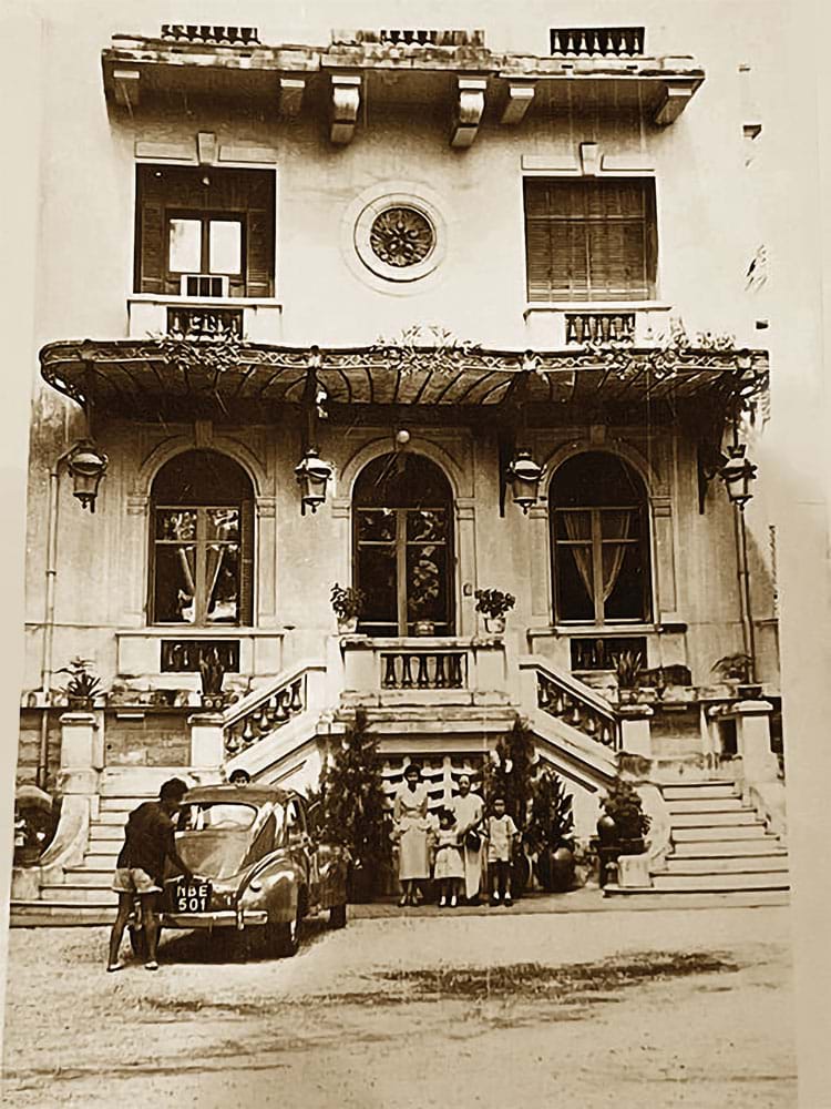 Bà Agnes khi còn nhỏ cùng mẹ, vú em và một người bà con tại tòa nhà tư gia trước 1975. Ảnh tư liệu gia đình