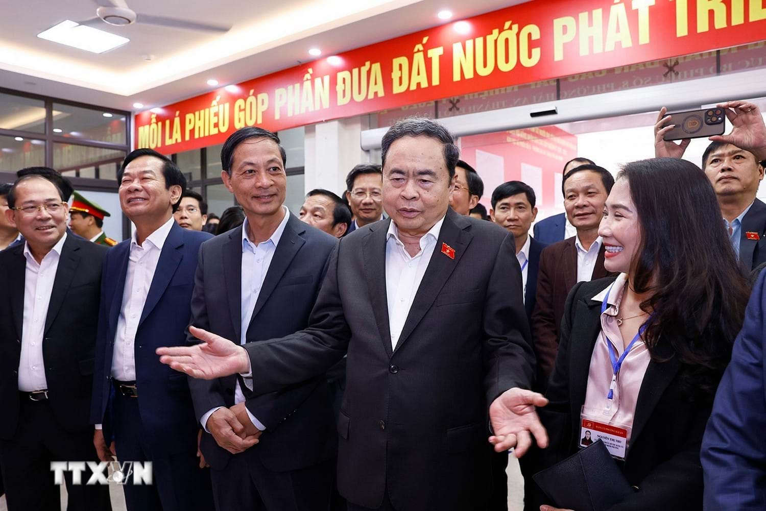 Chủ tịch Quốc hội Trần Thanh Mẫn kiểm tra, giám sát công tác chuẩn bị bầu cử tại khu vực bỏ phiếu số 8, phường Hải An, thành phố Hải Phòng. Ảnh: Doãn Tấn/TTXVN