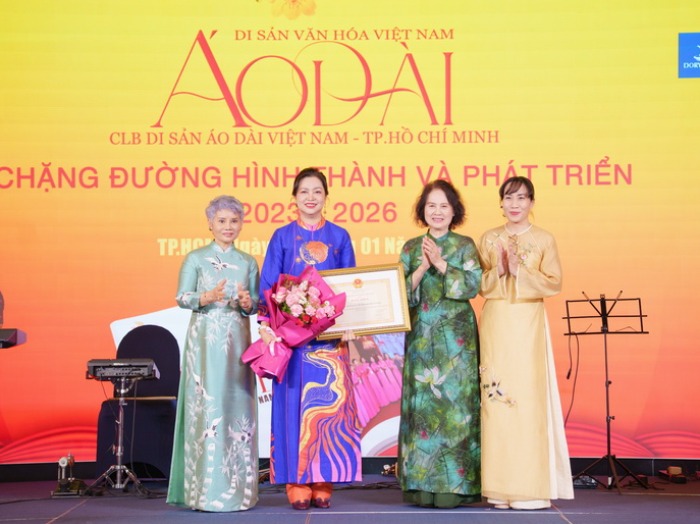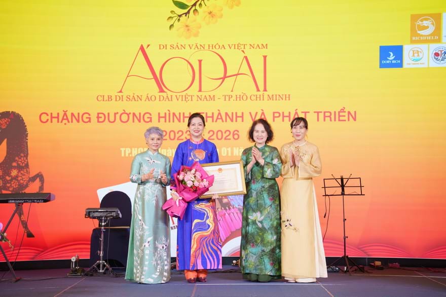 CLB Di sản Áo dài Việt Nam TP.HCM nhận bằng khen của Hội Di sản văn hóa Việt Nam.