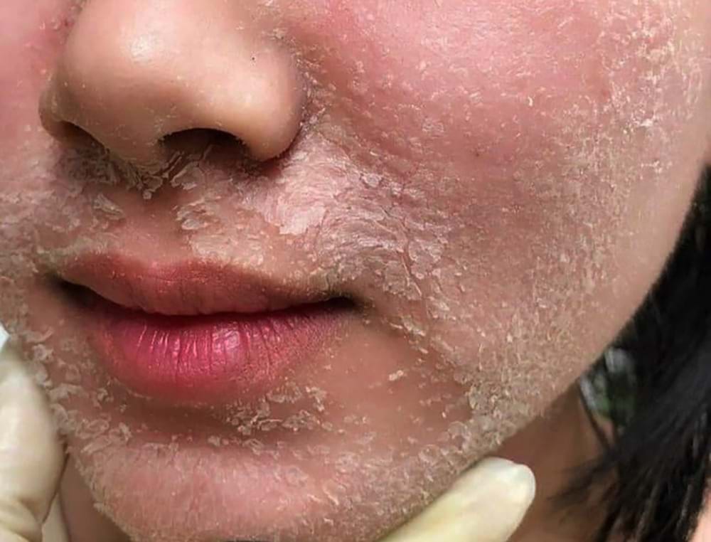 Peel da không đúng cách, da sẽ bị bong tróc, ửng đỏ. Ảnh: Mạng xã hội