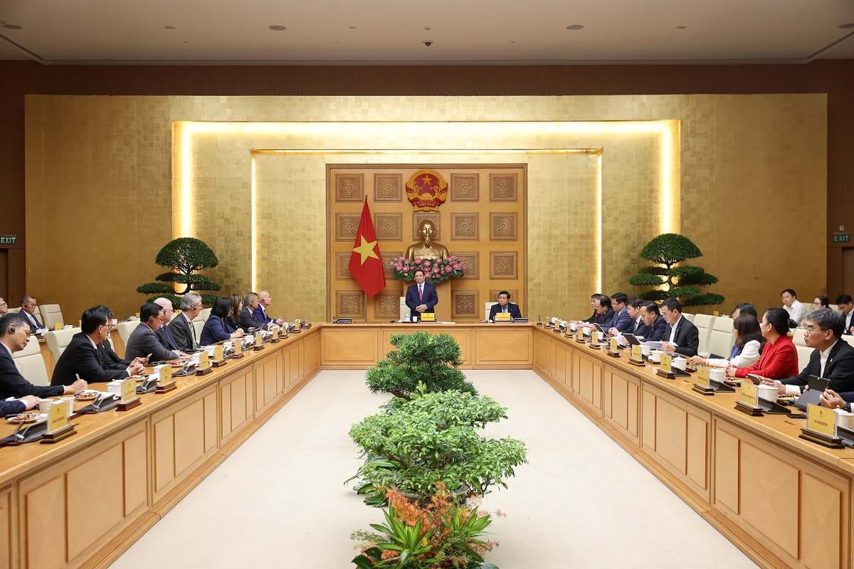 Thủ tướng Chính phủ đề nghị SEMI và các doanh nghiệp bán dẫn thế giới tin tưởng vào môi trường đầu tư và tiếp tục đầu tư vào Việt Nam; tiếp tục đề xuất cơ chế, chính sách để phát triển ngành bán dẫn Việt Nam trên tinh thần hai bên cùng có lợi... Ảnh: Nhật Bắc