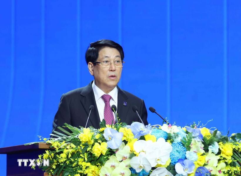 Chủ tịch nước Lương Cường phát biểu khai mạc Lễ mở ký và Hội nghị cấp cao Công ước của Liên hợp quốc về chống tội phạm mạng. Ảnh: Tuấn Anh/TTXVN