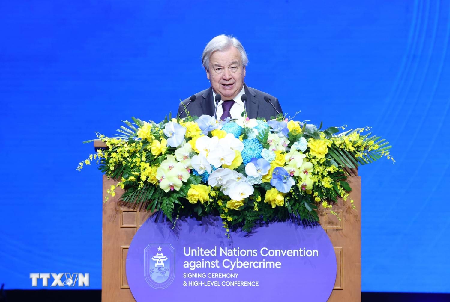 Cho rằng nhân loại đang sống trong thời kỳ chuyển đổi công nghệ chưa từng có, với những tiến bộ giúp thế giới gần nhau hơn nhưng cũng tiềm ẩn rủi ro ngày càng lớn, ông Guterres đánh giá Công ước Hà Nội là hiệp ước tư pháp hình sự toàn cầu đầu tiên sau hơn hai thập kỷ, tạo khuôn khổ pháp lý chung để các quốc gia phối hợp chống tội phạm mạng.
