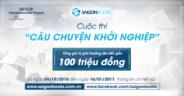 Cuộc thi bắt đầu từ hôm nay đến hết ngày 24.01.2017, bao gồm 6 chủ đề: Ý tưởng, Cộng sự, Chiến lược kinh doanh, Huy động vốn, Truyền thông - Marketing và Người cố vấn. Người dự thi gửi bài thi qua email: info@saigonbooks.com.vn. Trong email ghi rõ thông tin cá nhân gồm: họ và tên, số điện thoại liên lạc, bút danh,… Chủ đề email: (tên của cuộc thi)_(chủ đề)_(tên người dự thi). Mỗi người chỉ được gửi tối đa 1 bài dự thi/1 chủ đề.