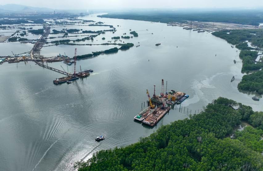 Dự án cầu Phước An bắc qua sông Thị Vải. Ảnh: Người lao động