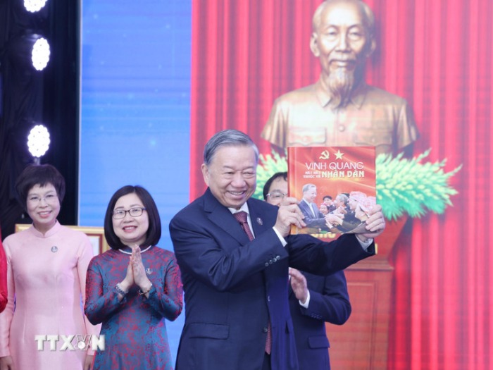 Tổng Bí thư Tô Lâm nhận sách ảnh Vinh quang mãi mãi thuộc về Nhân dân từ lãnh đạo Thông tấn xã Việt Nam trong Lễ kỷ niệm 80 năm thành lập Thông tấn xã Việt Nam ngày 13.9.2025. Ảnh: Lâm Khánh/TTXVN