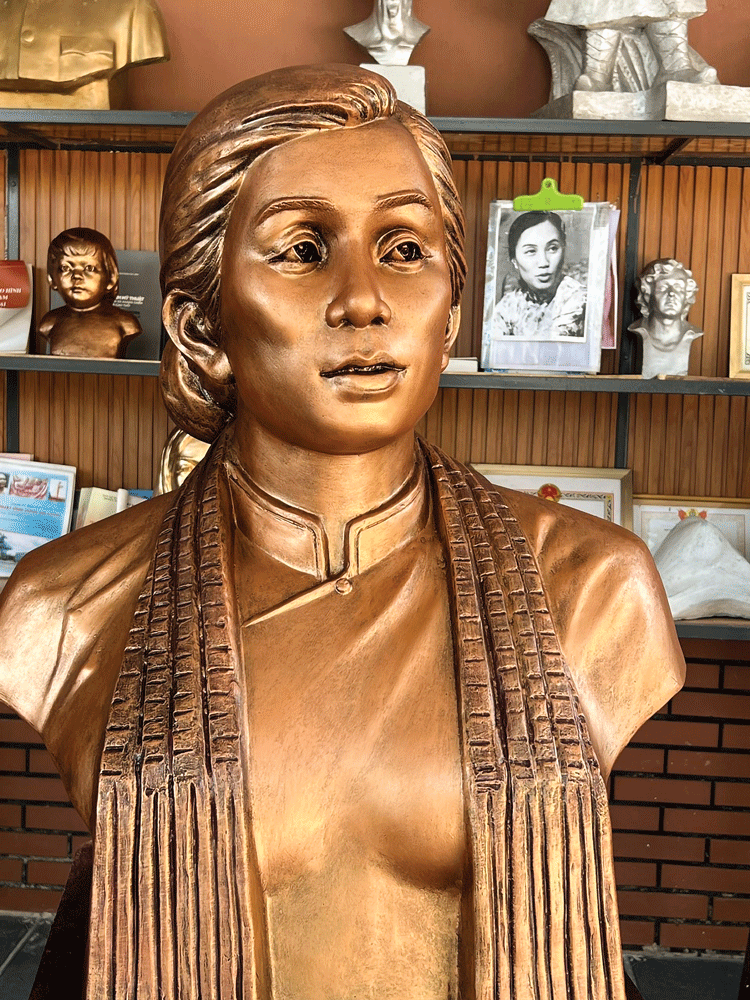 Bạn hãy tưởng tượng bức tượng chân dung một nữ chính khách đẹp nền nã, ngự ung dung và khiêm tốn ở một góc bảo tàng râm mát, âm thầm tỏa ra thứ ánh sáng đẹp đẽ của tri thức, của anh khí bừng bừng, sưởi ấm một góc lịch sử hào hùng của dân tộc Việt. Với tôi, một nghệ sĩ điêu khắc đã “thất thập cổ lai hy”, chỉ cần vậy, đã cảm thấy rất thỏa mãn rồi.