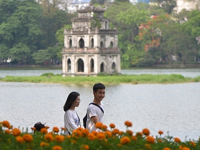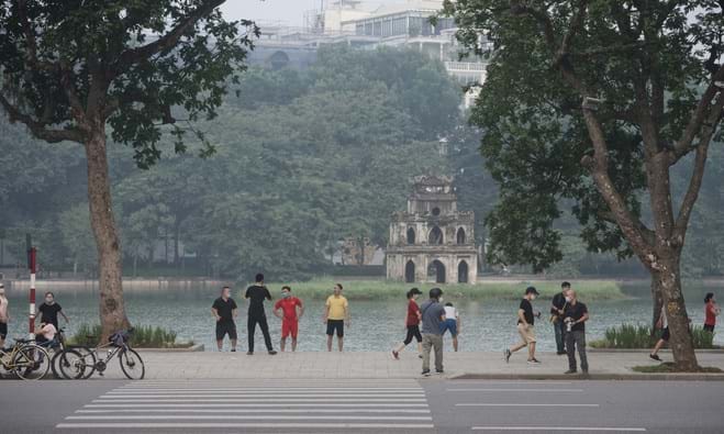 Tập thể dục ngoài trời tại khu vực hồ Hoàn Kiếm (Hà Nội). Ảnh: Củ Cải/Doanh nghiệp và Tiếp thị