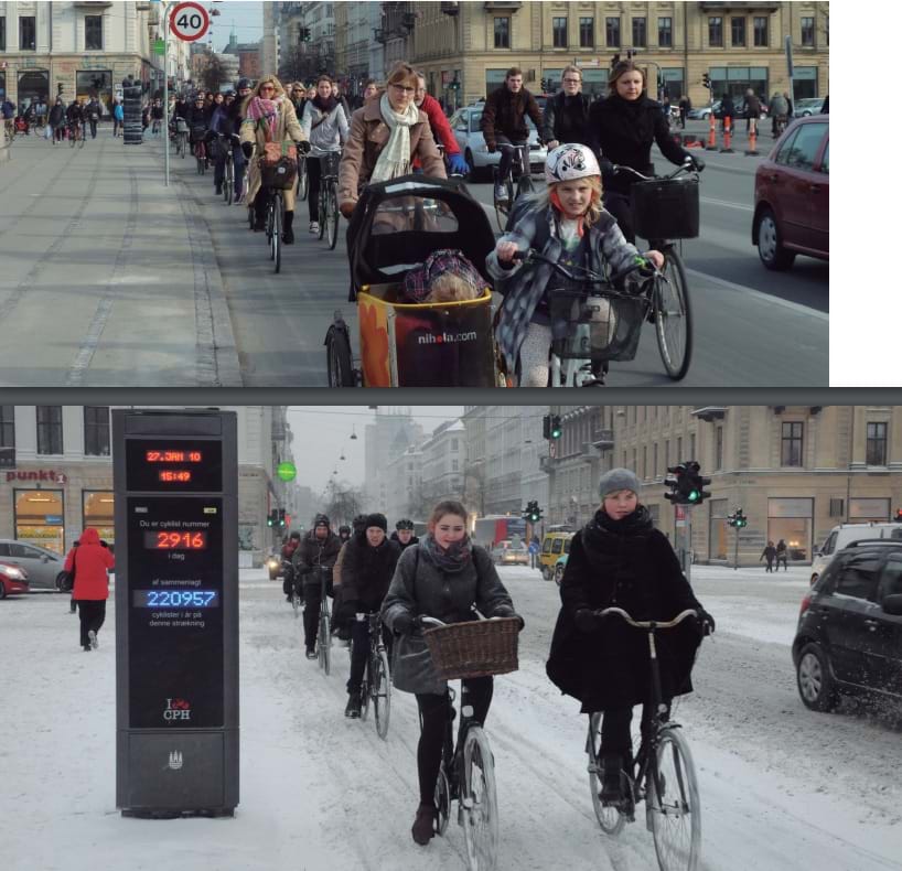 Những đô thị thân thiện và an toàn, người dân yêu thích đi bộ hoặc xe đạp khi tham gia giao thông ngay cả trong những điều kiện thời tiết khác nhau. Ảnh: Copenhagen