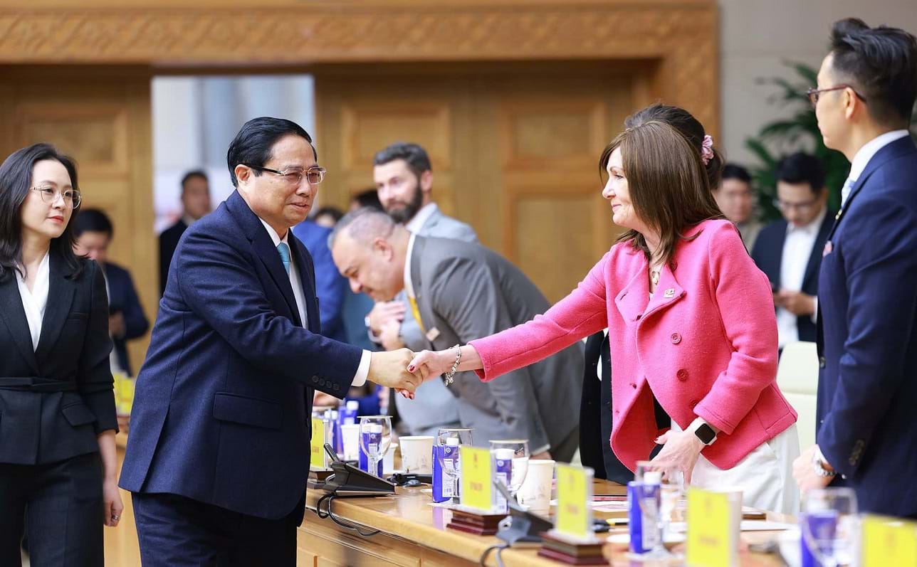 Thủ tướng Phạm Minh Chính trong cuộc gặp đối thoại với đại diện cộng đồng DN châu Âu tại Việt Nam đầu năm 2025.  Ảnh: Eurocham Vietnam