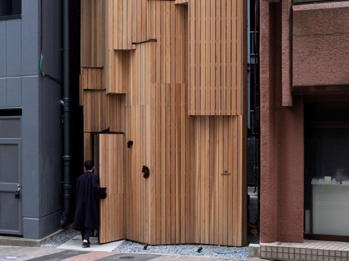 Có một công trình nhỏ, cao vừa đủ, đứng lọt thỏm trong khe hở ấy. Không biển hiệu lớn. Không kính bóng loáng. Chỉ là một lớp gỗ thô, xếp thành từng mảng, hơi lệch nhau một chút, như thể ai đó cố tình không làm cho nó quá hoàn hảo.