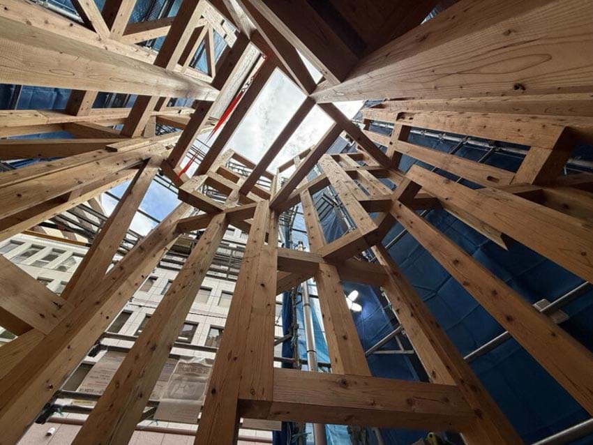 Cả công trình này thực chất là những khối gỗ nhỏ, lắp ghép lại với nhau. Có thể tháo ra. Có thể mang đi. Có thể dựng lại ở một nơi khác, nếu một ngày nào đó khu đất này không còn thuộc về nó nữa.